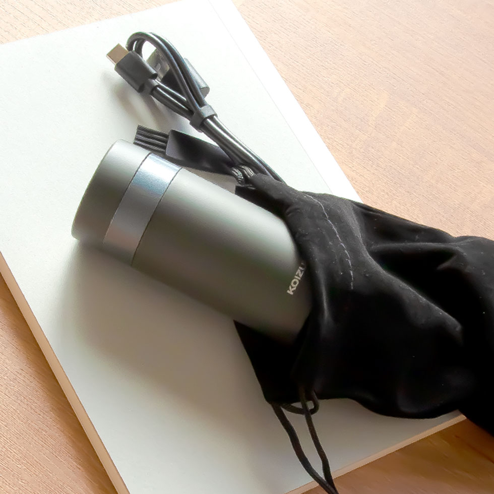 ※モニターの発色具合によって実際のものと色が異なる場合があります。メンズビューティーシリーズ USB充電でコンパクトな回転式シェーバー スマートに持ち運べる円柱型のシンプルデザイン。大人の魅力を引き出すチャコールグレーは、バッグに入れても出しっぱなしでも映えるおしゃれなカラーです。 肌に優しい回転刃 内刃が肌に直接触れにくいので肌にやさしい設計です。 USB充電式だから、いつでもどこでも活躍。 本体側USB typeC対応(専用ケーブル付属)約8時間の充電で、最大約60分使用できます。 *USB-ACアダプター(DC5V 1A)は別売となります。 旅行や出張時も、場所を取らず持ち運びできます。 その他の機能 水洗いOK アタッチメントは水洗い可能で清潔に。掃除ブラシも付属。 収納に便利なキャップ付き 【商品仕様】メーカー名:コイズミ 電源:充電式DC5V1A(市販または当社別売部品のUSB-ACアダプター使用) 使用電池:ニッケル水素充電池(DC2.4V 600mAh) 消費電力:約5W(充電時) 充電時間:約8時間 持続時間:約60分 往復/回転:回転式 水洗い:網刃アタッチメントと内刃のみOK その他機能:USB充電(本体側Type-C) 本体サイズ:約41(W)×41(D)×89(H)mm(キャップ装着時) 質量:約115g(キャップ装着時) 付属品:ポーチキャップ掃除用ブラシUSBケーブル取扱説明書(保証書付) 本体保証期間:1年間 ■知っていただきたいこと ・USB-ACアダプタは別売となります。 ・充電しながらのご使用はできません。 ・本体の水洗いはできません。 ※充電池について ニッケル水素充電池の特性上、電池容量を使い切らずに充電を繰り返すと、使用可能時間が減少す ることがあります。これを避けるため、最後まで使い切ってから充電することをおすすめします。 【関連ワード:KOIZUMI(コイズミ)の電動シェーバーKMC-0721は、産毛が目立ちやすいフェイスラインやこめかみ、顎周りの顔剃り(うぶ毛・ウブ毛剃り)・ムダ毛の処理に肌に優しく、つるつるすべすべのなめらかな仕上がりにフェイスケア。カミソリに比べて、肌への傷を作りにくく安全性が高く安心して顔剃りや産毛・すね毛の処理ができる男性用の電気フェース&ボディシェーバー。洗顔後や入浴後は毛穴が開いて産毛が立っているので剃りやすいから、敏感肌や乾燥肌、肌荒れの軽減や夏前のボディケアにもおすすめ。コンパクトサイズでポーチ付きだから収納や持ち運び、旅行、車内に便利な電動シェーバー。アタッチメントは洗える防水構造。USB充電式ですぐに使える美容家電で息子さんお父さん、彼氏など男性へのプレゼントやお祝いにもオススメで人気の電気カミソリの価格や値段比較、KMC0721との違いなどはkoizumi(小泉成器)でチェック。 】