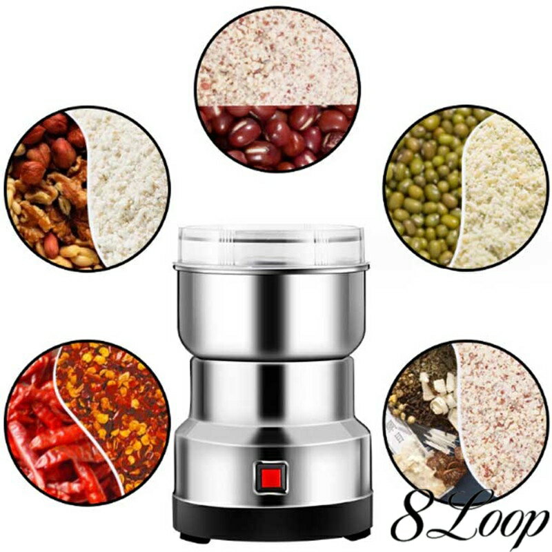 本体外形寸法】 サイズ:17*11cm 回転速度: 24000 (r/min) 業務用、家庭用でも使える大容量小型軽量 電動製粉機。4枚刃付き! 【とても便利】 様々な角度へ傾けながら粉砕することで均一な微粉砕をすることができます。 蓋は半透明で見やす便利! 【ステンレス製】 穀類を豆類、乾燥魚肉、香辛料、食品や薬草類、鉱物の粉砕など幅広い用途でご使用頂けます。