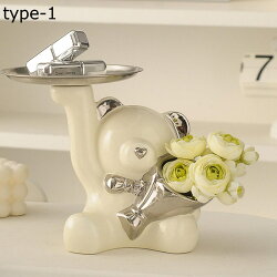 玄関収納 クマ 熊の置物 北欧風 結婚式プレゼント 鍵置き キー収納トレイ 多機能収納 彫刻装...