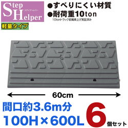 段差解消スロープ 屋外用 ステップヘルパー 段差10cm用 幅60cm 【6個セット】 間口3.6m分 ...