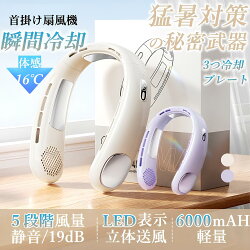 旅行 瞬間冷感 LED風量&残量表示 3000mAh大容量電池 5段階風量調節 静音 羽根なし ネッククー...
