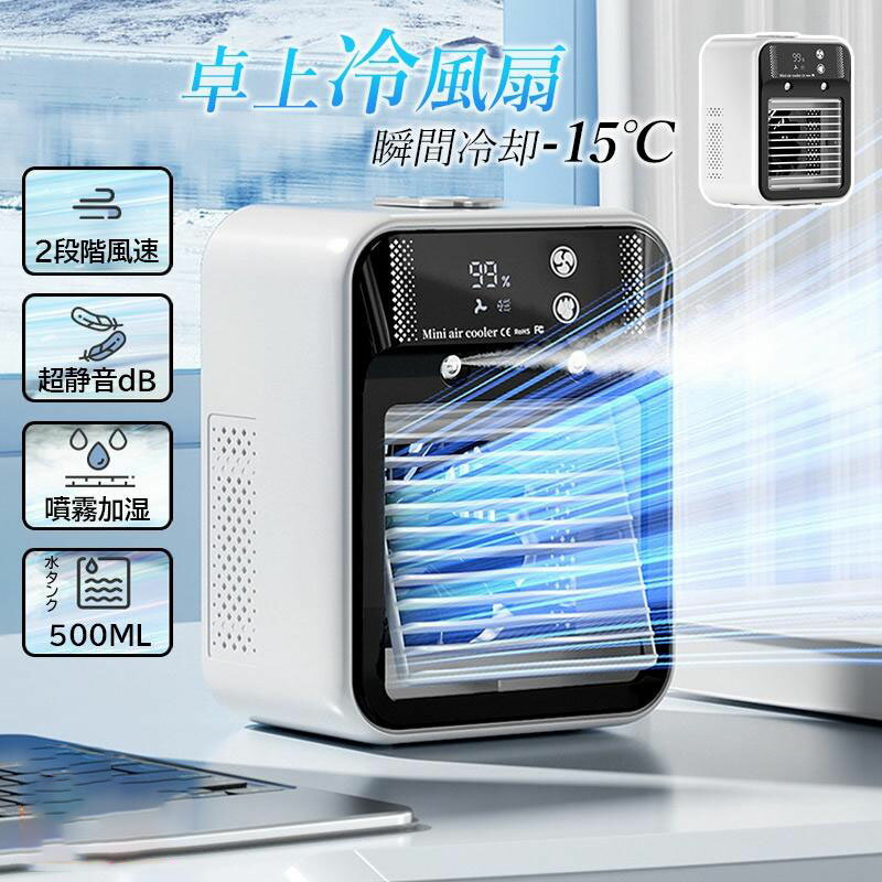 2025 冷風扇 扇風機 卓上 小型 加湿器 冷風機 ミスト 低騒音 ウォータークールファン 冷却 充...