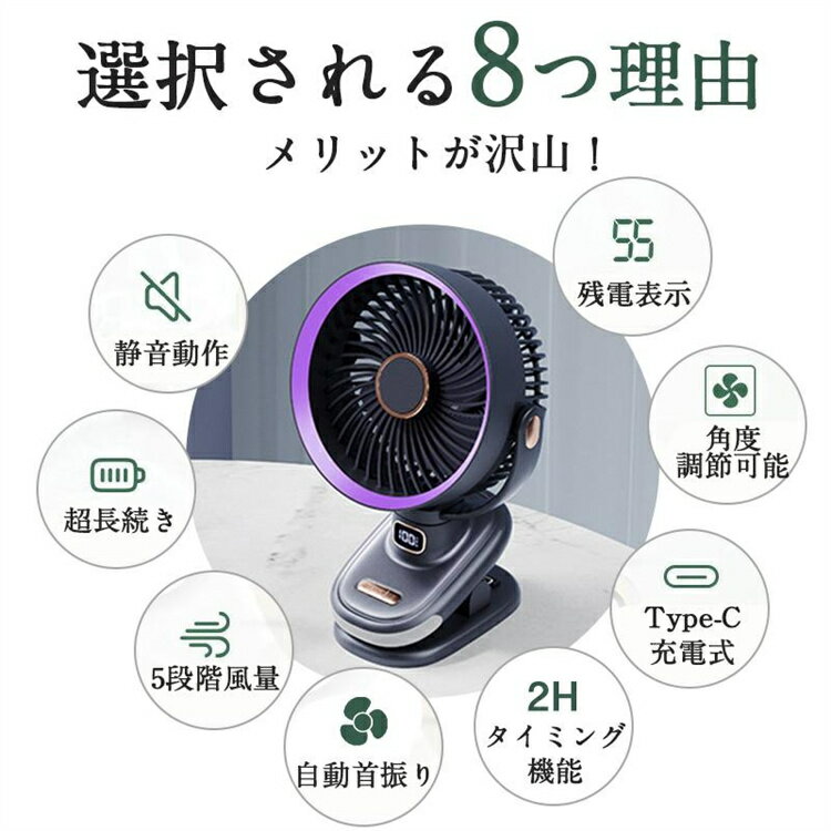 扇風機 クリップ 卓上 クリップ扇風機 10000mAh サーキュレーター デスクファン タイマー機能 卓上扇風機 小型扇風機 ミニ扇風機 首振り 角度調節 クリップファン 4枚羽根 連続稼働 扇風機 3段階風量調節 充電式 静音 熱中症対策 可愛い 猛暑対策 屋外 キャンプ