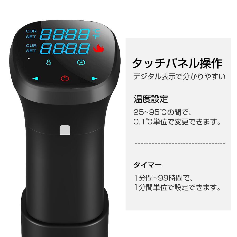 低温調理器 防水 低温調理 防水仕様 スロークッカー 低温調理器具 スリム低温調理器 真空調理器 IPX7防水 タッチパネル クリップ式 低温調理機 低音調理器 タイマー 温度設定