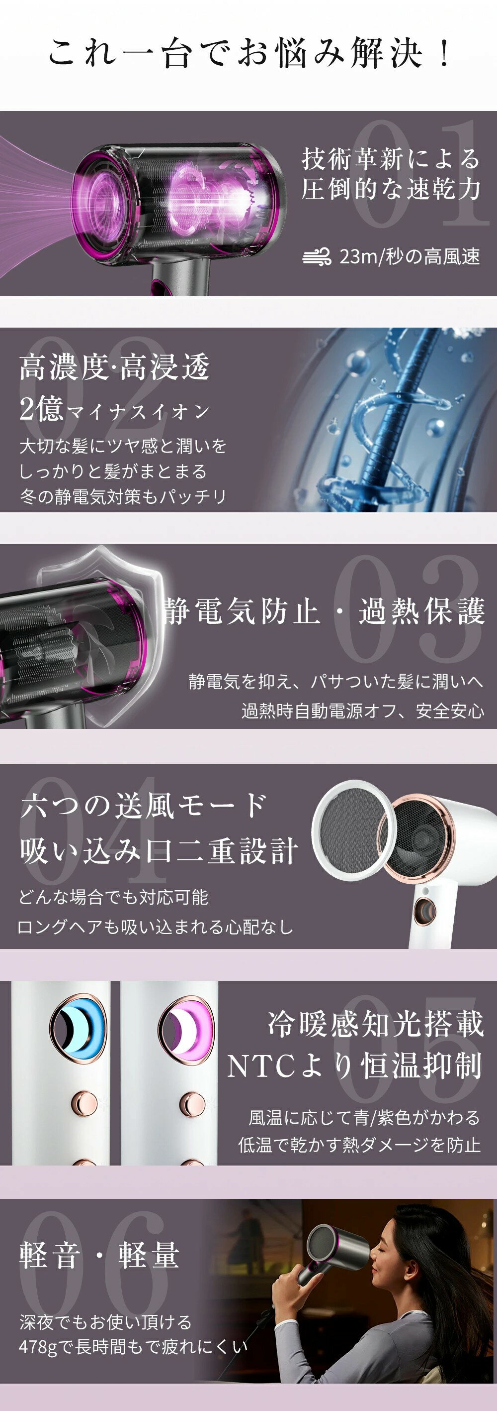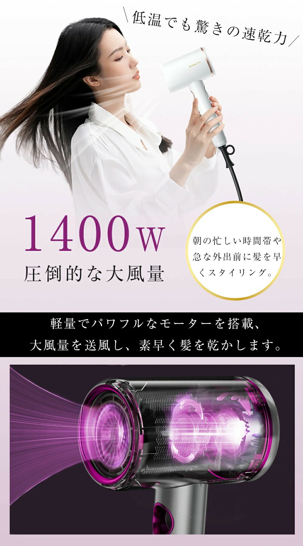 ドライヤー 速乾 大風量 2億マイナスイオン 軽量 静音 1年保証 高速ドライヤー ヘアドライヤー 静電気除去 コンパクト 人気 髪質改善 美容家電 ヘアケア 美髪 時短 レディース メンズ ヘアサロン 冷熱風 ホワイトデ ギフト 家庭