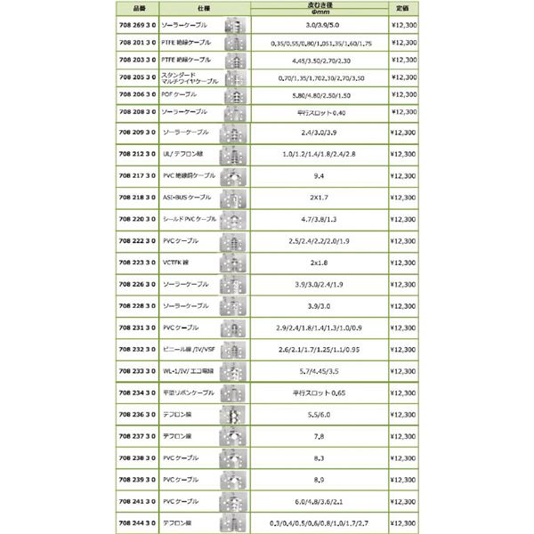 ■商品内容●最新のメカニズムを採用したストリッパー。●テフロン・シリコン・ゴム等のデリケートな被覆も簡単にストリッピング(皮むき)することができる。●極めて精密なブレードにより、より線等も丁寧にストリッピング(皮むき)することができる。●ストリッピング(皮むき)する長さを固定するストッパー付きなので繰り返しの作業も容易。●4枚のブレードは電線サイズや種類に応じて交換が可能。(4枚一式)●スムーズに操作できる構造。●軽量でコンパクトなデザイン。●握りやすいハンドル形状により快適に作業が行える。●ボディーはスチール製。●刃の材質はオイル焼き入れ焼き戻し処理済みの特殊工具鋼。■商品スペック【仕様】・標準付属替刃:708 237 3 0・能力(AWG):2・ストリッピング能力(φ;mm):7.80・全長(mm):220・重量(g):425■送料・配送についての注意事項●本商品の出荷目安は【1 - 5営業日 ※土日・祝除く】となります。●お取り寄せ商品のため、稀にご注文入れ違い等により欠品・遅延となる場合がございます。●本商品は仕入元より配送となるため、沖縄・離島への配送はできません。[ 708 237 3 ]