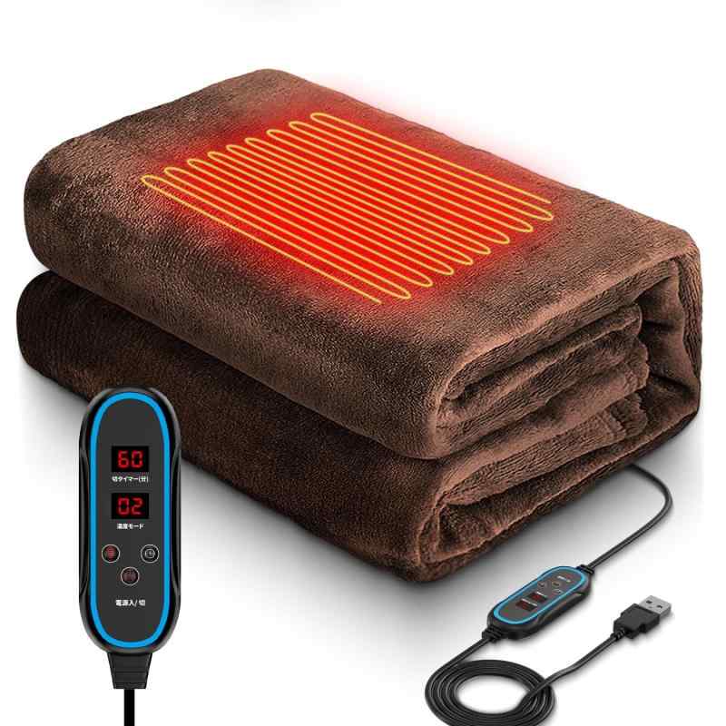 電気毛布 掛け敷き兼用 自動オフ タイマー付き 電気ブランケット 温度調整 防寒対策 USB ひざ掛け 肩掛け 洗える 省エネ オフィス 車内 アウトドア キャンプ テント泊用USB給電しながら使う電気ブランケットです。着て、羽織って、膝にかけて、腰に巻いて、足にかけて、色々使えます。自宅はもちろん、車内、オフィス、アウトドアで使っても便利、防寒対策として、冬の寒さを乗り切るおともにぴったりです。弱・中・高の三段階から温度を調節でき、冷え具合に合わせて心地良い温度に自由に切り替えられます。冬の寒い時期だけでなく、冷房で体が冷える夏場の室内でも活用可能。切り忘れ防止のタイマー機能付き、運転時間が60分・120分・180分から選べる電気ブランケットです。時間になると自動的に電源が切れます。
