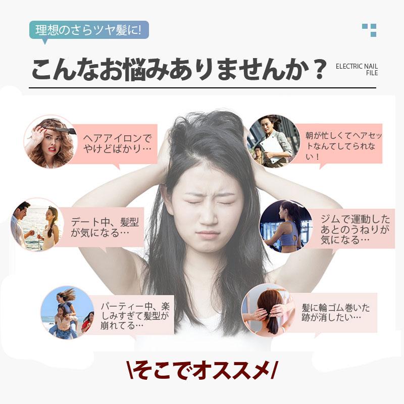 ヘアアイロン ストレート ブラシ 充電式 ヘアアイロンブラシ コードレス 携帯用 ブラシ カール 2way マイナスイオン 静電気防止 火傷防止 温度調節