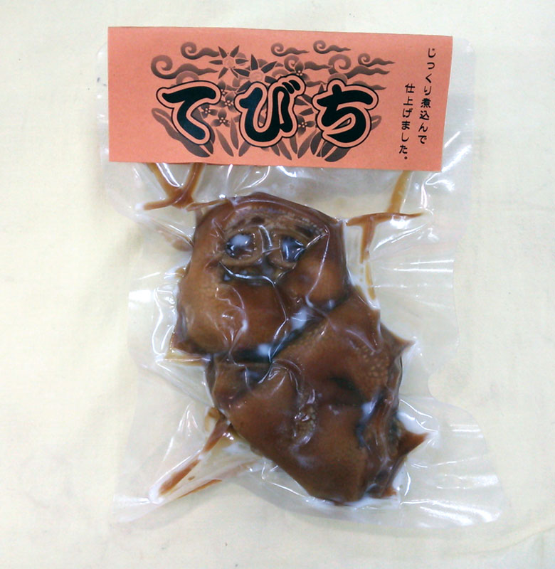 石垣島の「割烹かりゆし」の味。 テビチ煮付(豚足)(真空パック) 豚の足を煮込み、ゼラチンが最高です。 コラーゲンでお肌ツルツル!! 沖縄料理に欠かすことのできない素材!! 豚を使って、テビチ(豚足)の煮付という代表的な料理。 お好みの野菜を加えて、さらに煮込んでいただいても 美味しくいただけます!! <お召し上がり方> (1)袋のまま熱湯の中で5〜10分温めてからタレごとお召し上がり下さい。 (2)電子レンジの場合、本品を開封してお皿に移しラップをして 2〜3分温めてからお召し上がり下さい。 (3)本品を開封しタレごとなべに移し、人参、ごぼう、 しいたけ等を加えて煮込みますと一層おいしくお召しあがれます。 また、そばの上に乗せてもおいしくお召しあがれます。 要冷蔵の為、レターパックプラスでの発送は出来ません。 チルドゆうパックで発送いたします。 (チルドゆうパック料金は「通常のゆうパック運賃+保冷料金」となります) 保冷料金 サイズ 60サイズ 80サイズ 100サイズ 120サイズ 料金 +225円 +360円 +675円 +1,330円 ゆうパック料金はページ下部に記載しております。 ご確認ください。 商品名 テビチ煮付(豚足) 内容量 200g 原材料 豚足、醤油、砂糖、泡盛、食塩 調味料(アミノ酸等) 賞味期限 枠外に記載 レターパックプラスでの送付は不可能です。