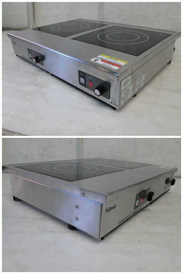 フジマック 業務用卓上2連IHコンロ FIC604550 単相200V×2口(0916BH)7AT-13S【中古】【RCP】 メーカー:(株)フジマック 型式:FIC604550 年式:2016年 USED(ユーズド) 取扱説明書ありません フジマック、業務用卓上2連IHコンロ、FIC604550、単相200V×2口です。 コンパクトサイズで軽量、持ち運びも簡単な業務用IHコンロ。 喫茶店、小規模レストラン、パントリー、ビュッフェサービス等に最適。 動作確認済、本体は清掃済です。 電源単相200V 50/60Hz 2.5kw 状態 微細なすり傷や汚れ少々、目立ったものはありません。 使用少ない感じで、きれいな状態です。 本体サイズ:幅60cm×奥行45cm×高さ12cm 重量11.5kg ■送料■(5) 当商品は楽天【送料込みライン】 対象商品に付、送料込み となります。 ■その他■ ■水曜日(当方定休日)及び土曜・日曜はメール送信や出荷作業はしておりませんのでご了承下さい。 ■特別な記載が無い限り、付属品は画像に写っているものが全てです。 画像や説明に無い部品で、使用時や取付時に必要な部品はノークレームでお願い致します。 画像や説明にない必要な部品はご自身でご用意ください。 当方はメーカーではありませんので、商品に関して詳しくありません。 欠品部品があるかもしれませんので、良くお調べの上ご入札ください。 ■商品の不良の場合、商品到着から一週間の保証(販売価格までの返品・返金)を致します。期日を過ぎた場合は、対応できません。 ■当商品(不良品も含む)による商品以外の損害については一切補償できませんのでご了承下さい。 ■商品に関するご不明な点は、ご注文前にご質問下さい。 ■サイズ・イメージ違い等、ご注文後のキャンセル、返品はお受け出来ません。ノークレーム、ノーリターンでお願いします。 ※万が一購入者都合によるキャンセルの場合は、 キャンセル料と致しまして商品代金の20%を頂戴いたします。その場合の往復の送料はご負担下さい。