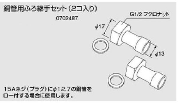 商品名 銅管用ふろ継手セット(2コ入り) 品番 0702487 メーカー NORITZ(ノーリツ) 注意事項1 こちらの商品はお届けまでにお時間を頂く場合がございます お急ぎの方はご購入前に弊社まで納期のご確認をお願い致します 注意事項2 対応している給湯器以外は使用できません 対応機種が分からない場合はメーカーまたは当社までご確認をお願い致します