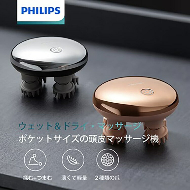●薄くて軽いシリコーン製マッサージ爪・ミニヘッドケアブラシ181gの軽量モデル、薄型デザインで持ち運びに便利です。頭皮の血行を促進し、頭部のマッサージを行うことで顔色を明るくクマやくすみも改善。乾湿両用で入浴中も使えます。●IP67防塵防水性能本体はIP67の防塵防水に加え、防振性能。お風呂や、シャワーなどで髪の毛を洗う際にも使用できます。髪の毛を洗いながらマッサージすることで、汚れを掻き出し、髪がふんわり立ち上がるような仕上がりに。●強度の違う2種類の爪アタッチメント柔らかくて厚いシリコンマッサージ爪(接触マッサージ点76箇所)と少し固めで細いシリコンマッサージ爪(接触マッサージ点100箇所)の2種類です。●薄いフリスビー胴体で片手で使用可能本体の重さはiPhone携帯と同じくらいの181g。旅行や出張にも携帯しやすいサイズです。●頭皮の活力を刺激透過力の強い赤色光で、頭皮の奥までケアし微環境を改善。●商品サイズ(cm)幅約9×奥行約9×高さ約5.65●商品重量約0.181kg●規格マッサージ方式:4つのアタッチメントでマッサージするタイプ(フィリップス特許)バッテリー容量:1200mAh連続使用時間:120分オートオフ機能:15分充電時間:2.5−3h可動電圧:3.7V消費電力:5W充電電圧:5V充電電流:1Aセット内容:本体、シリコン*8、Type-C充電ケーブル、専用収納ポーチ、取扱説明書兼保証書(検索用:PHILIPS ヘッドケア ヘッドスパ 頭皮ブラシ 頭皮マッサージ マッサージ 防水 防塵 軽量設計 PPM1301DG 4897126051469 4897126051865)最強翌日配送対象商品に関するご案内 最強翌日配送対象商品・対象地域に該当する場合は最強翌日配送マークがご注文カゴ近くに表示されます。 最強翌日配送可能なお支払方法は【クレジットカード、代金引換、全額ポイント支払い】のみとなります。 下記の場合は最強翌日配送対象外となります。 ・15点以上ご購入いただいた場合 ・時間指定がある場合 ・ご注文時備考欄にご記入がある場合 ・決済処理にお時間を頂戴する場合 ・郵便番号や住所に誤りがある場合 ・最強翌日配送対象外の商品とご一緒にご注文いただいた場合 ・お届け先住所文字数が40文字以上の場合
