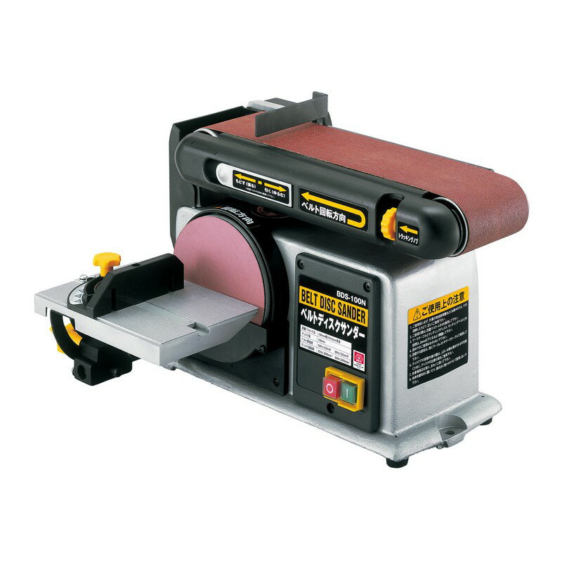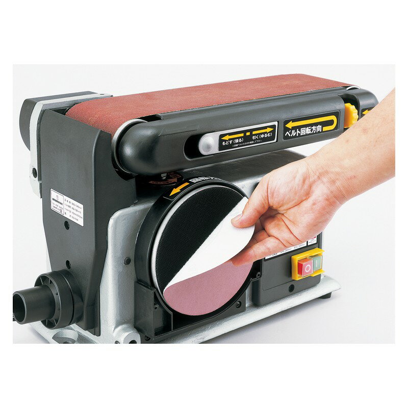 商品情報説明据え置き型で安定感のあるベルト&ディスクサンダーです。用途非鉄金属・木材などの小物研磨。機能ベルトサンダーとディスクサンダーの1台2役です。大型100mm幅のベルトペーパー採用、またディスクペーパーはマジックテープ式で交換が簡単です。ベルトサンダーの研磨台は水平・垂直どちらでも作業できます。ディスクサンダーのテーブル角度を調整すれば木材の角度削りが可能、また、ベルトサンダーの先端部で内丸面の研磨も可能です。付属のダストノズルを併用することで集塵機と接続できます。仕様●電源:単相交流100V(50/60Hz共用)。●電流(50Hz/60Hz):3.4A/4.0A。●消費電力(50Hz/60Hz):280W/340W。●研磨ベルト寸法:100mm幅×915mm周長。●ベルト速度:50Hz:432m/分・60Hz:522m/分。●ディスクペーパー径:150mm。●ディスク回転数:50Hz:2855回転/分・60Hz:3450回転/分。●コード長:約2.0M。材質等付属品・部品など●付属品:サンディングベルト(♯60、120、240各1枚)、ディスクペーパー(♯60、120、240各1枚)、マイターゲージ、六角棒レンチ6mm、ワークレスト、集塵アダプター。注意・ご案内電動工具は雨中で使用したり、湿った、または濡れた場所で使用しないでください。作業場は十分明るくしてください。可燃性の液体やガスのある所で使用しないでください。作業時は保護めがねを使用してください(また、粉塵の多い作業では、防塵マスクを着用してください)。使用中、機体の調子が悪かったり異常音がした時は、直ちにスイッチを切って使用を中止し、お買い上げの販売店に点検・修理を依頼してください。【ご注意(免責事項)> 必ずお読み下さい】商品情報には注意を払っておりますが、メーカー都合により予告なくパッケージ、商品名、容量、産地等が変更になる場合がございます。予めご了承ください。