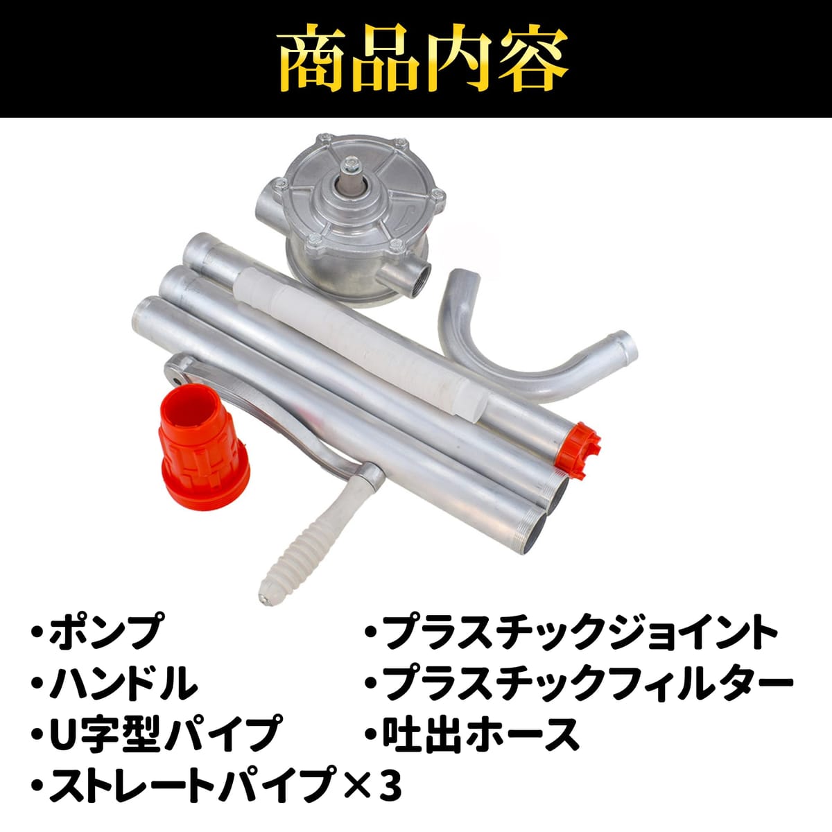 【商品タイトル】 ドラムポンプ ドラム缶 オイルポンプ 灯油ポンプ ポンプ 手回し式 回転式 吸い上げ 汲み上げ 灯油 給油 軽油 アルミ製 手動式 25L 70回転【商品の特徴】 アルミ製で丈夫で軽量で扱いやすいです。手動式ですが大きなハンドルのため利用しやすいです。 加えて、油漏れの心配がない設計です。組み立て式で、分解するとコンパクトに収納できます。 主に灯油、軽油、機械油などのオイル類をドラム缶から汲み上げるのに使用されます。【商品の仕様】 毎分吐出量: 25L/min、70回転 材質: アルミ、プラスチック 全長: 約136cm 重量: 約1.3kg パイプ長さ: 約100cm パイプ太さ: 約32mm 吐出ホース長さ: 約60cm 吐出ホース太さ: 約25mm【注意事項】 ※デザインや仕様は入荷時期によって変更されることがあります。 ※輸入品の為、若干の傷・汚れ・サビがある場合がございます。 ※取扱説明書は付属しておりません、ご了承下さい。 ※製品の使用による他の商品の破損や故障、および作業中の事故や取り付けミスによる破損については責任を負いません。 ※モニター環境等によって色の見え方に若干差が生じる場合があります。 ※個体によりアダプターの穴の位置など若干のずれがありますが、ご利用には支障がない程度です。ただし、完璧主義や神経質方はご遠慮下さいますようお願い申し上げます。 【商品タイトル】ドラムポンプ ドラム缶 オイルポンプ 灯油ポンプ ポンプ 手回し式 回転式 吸い上げ 汲み上げ 灯油 給油 軽油 アルミ製 手動式 25L 70回転【商品の特徴アルミ製で丈夫で軽量で扱いやすいです。手動式ですが大きなハンドルのため利用しやすいです。 加えて、油漏れの心配がない設計です。組み立て式で、分解するとコンパクトに収納できます。 主に灯油、軽油、機械油などのオイル類をドラム缶から汲み上げるのに使用されます。【商品の仕様】毎分吐出量: 25L/min、70回転 材質: アルミ、プラスチック 全長: 約136cm 重量: 約1.3kg パイプ長さ: 約100cm パイプ太さ: 約32mm 吐出ホース長さ: 約60cm 吐出ホース太さ: 約25mm【注意事項】※デザインや仕様は入荷時期によって変更されることがあります。※輸入品の為、若干の傷・汚れ・サビがある場合がございます。※取扱説明書は付属しておりません、ご了承下さい。※製品の使用による他の商品の破損や故障、および作業中の事故や取り付けミスによる破損については責任を負いません。※モニター環境等によって色の見え方に若干差が生じる場合があります。※個体によりアダプターの穴の位置など若干のずれがありますが、ご利用には支障がない程度です。ただし、完璧主義や神経質方はご遠慮下さいますようお願い申し上げます。