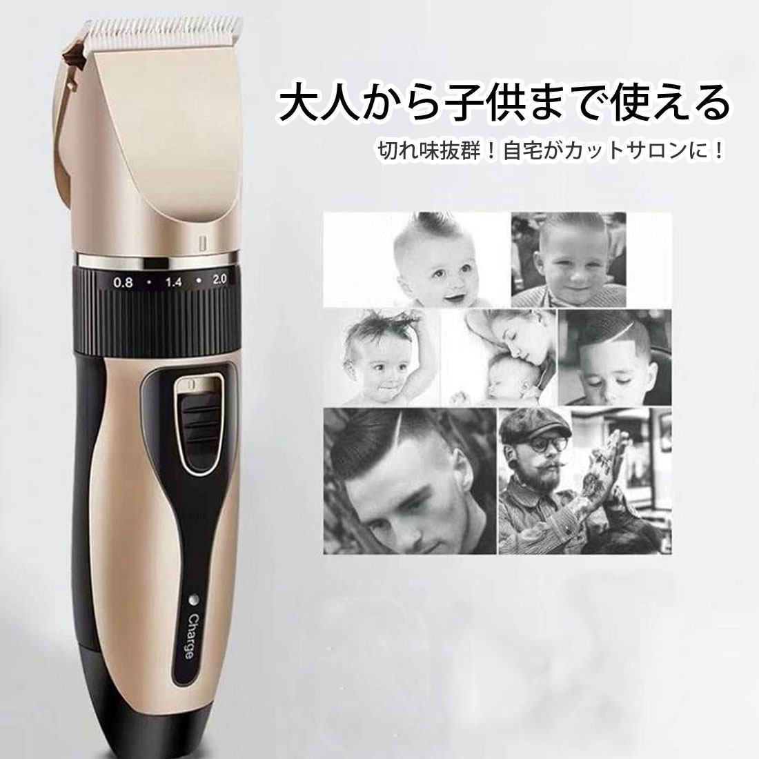 家庭用に最適!大人から子供まで使える安全設計。商品詳細 商品番号 LRZ-031 カラー ゴールド サイズ(約) 画像参照 材質 詳細 ■USB充電対応!モバイルバッテリーからも充電可能。 ■刃はセラミック&チタン合金製の2重構造で丈夫で切れ味を長く保つことができます。 ■経済的!自宅カットで理美容院代を大幅節約。 ■R型刃であらゆる角度で肌にふれても傷つかない安全設計 【商品内容】:電動バリカン 【サイズ】:約4.5cmx18.4cmx4cm 【重量】:約330g 【長さ調整】 本体:0.8mm・1.1mm・1.4mm・1.7mm・2.0mm アタッチメント4種類:3mm・6mm・9mm・12mm 【電源】:USB電源 【対応電圧】:5V/0.3A?1A 【充電時間】:6?8時間 【稼働時間】:約90分 ○使用上の注意事項○ ※改造/本来の目的以外/強い衝撃などはお控え下さい。 ※仕様は改善の為に予告なく変更する場合があります。 ※ディスプレイ画面等の環境上、写真と実際の商品の色とは多少違う場合がございます。 ※弊社では他サイトでも販売しております。 ご注文が入りました際に、ご注文の時間差により完売の場合もございます。 ご了承願います。 ※お取り寄せ商品はお取り寄せ後の発送となります。 お取り寄せ商品は通常2〜4週間前後での発送となります。 発送日をよくご確認の上、お急ぎの場合はご注意ください。 配送について 配送方法 ■宅配便 ■メール便※メール便には当店独自の規定がございます。下記の注意点をお読み下さい。 注意点 ■メール便での配送は代金引換決済、配送日時指定ができません。 ■代金引換決済はメール便での配送をご利用頂けません。 ※代金引換決済にてメール便をご指定の場合、宅配便配送へと変更させて頂きますことを あらかじめご了承ください。