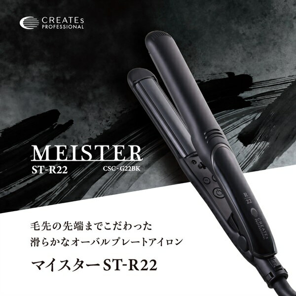●根元の立ち上がり、毛先のおさまり、ナチュラルなフォルムのストレートアイロンです ●マイスターST-R22が叶える理想のストレートデザインが可能です。 ●22mm幅オーバルプレートにより、縮毛矯正やアイロンスタイリング時にもナチュラルカーブや根元のボリュームをだすことができます。 ◆商品情報 プレート部分には、従来のクレイツイオン加工をさらに進化させた「プレミアムクレイツイオン」を配合。 遠赤外線効果により、スタイリング時に失われがちな毛髪内部の水分蒸散を抑え、うるおいを保ちながら、なめらかでツヤのあるストレートヘアを長時間キープします。 また、プレートには弾性に優れたフッ素ラバーを搭載。 開閉時にプレート全体がわずかにしなる構造で、髪一本一本に均一に密着し、滑らせる際に自然な抵抗感を生み出します。 この構造が髪を無理に引っ張らずに適度な圧をかけ、スタイリングをスムーズかつ効率的にサポートします。自宅でも思い通りの仕上がりが再現しやすく、プロのようなまとまり感が叶います。 40℃から220℃まで、20℃刻みで選べる10段階の温度調節機能付き。髪質やダメージの状態に応じて最適な温度でスタイリングができ、熱による負担を抑えながら美しい仕上がりを実現 商品名 クレイツイオン マイスターストレートST-R22 商品コード 4988338223130 型番 CSC-G22BK 電源 単相100-240VAC 消費電力 36W サイズ 約L254×H40×D32mm コードの長さ 約3.0m 重量 約217g(コード込:約364g) 温度調節 約40〜220℃/10段階温度調節 生産国 中国 ブランド名 CREATEs