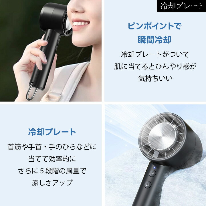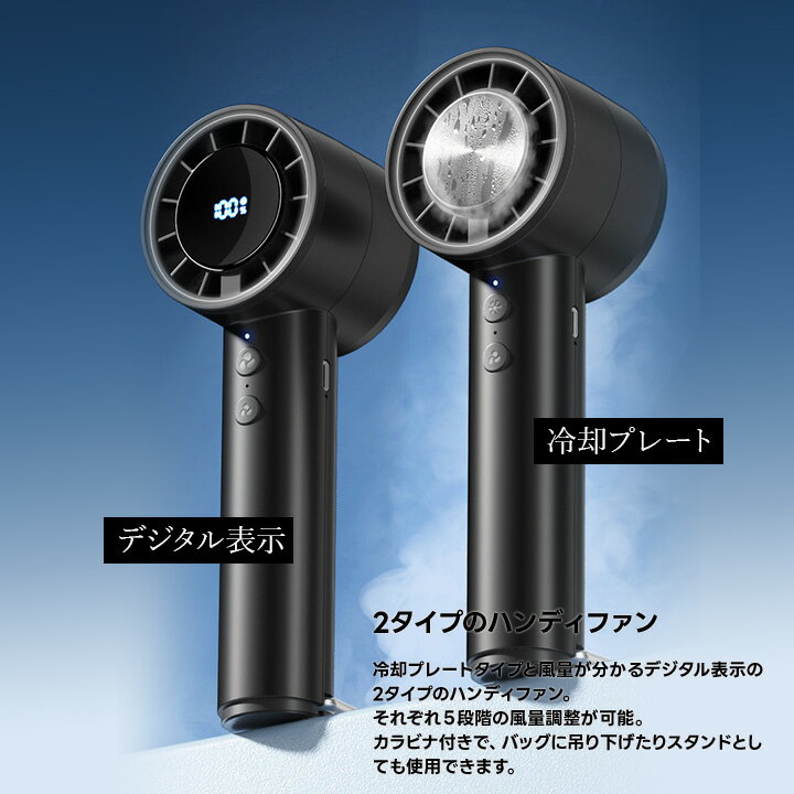 冷却プレートハンディファン デジタル表示ハンディファン 5段階風力 冷却扇風機 デジタル扇風機 充電式ハンディファン コンパクト扇風機 黒 桃 白 カラビナ 軽量 シンプル プレゼント