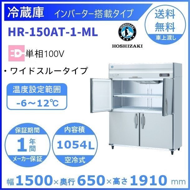 ホシザキ 業務用冷蔵庫 HR-150AT-1-ML|ワイドスルー|内容積 1054L|単相100V|外形寸法 幅1500×奥行650×高さ1910mm| 厨房 店舗用 別料金にて 設置 入替 回収 処分 廃棄 クリーブランド