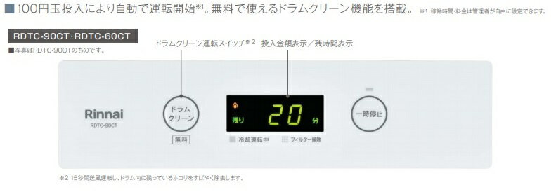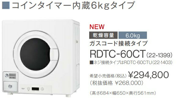 リンナイ業務用乾太くん6KGタイプ コインタイマー内蔵 RDTC-60CT (ガスコード接続タイプ) 扉勝手左右兼用 沖縄及び離島お届けは出来ません。 家電 > 生活家電 > 衣類乾燥機 ショップ名 レビュー数 住設クリックス楽天市場店 0件 店舗、施設等に最適です。 205,500円(税込) ツイート *オプションは、別途お問い合わせください。 ■カテゴリ 家電 > 生活家電 > 衣類乾燥機