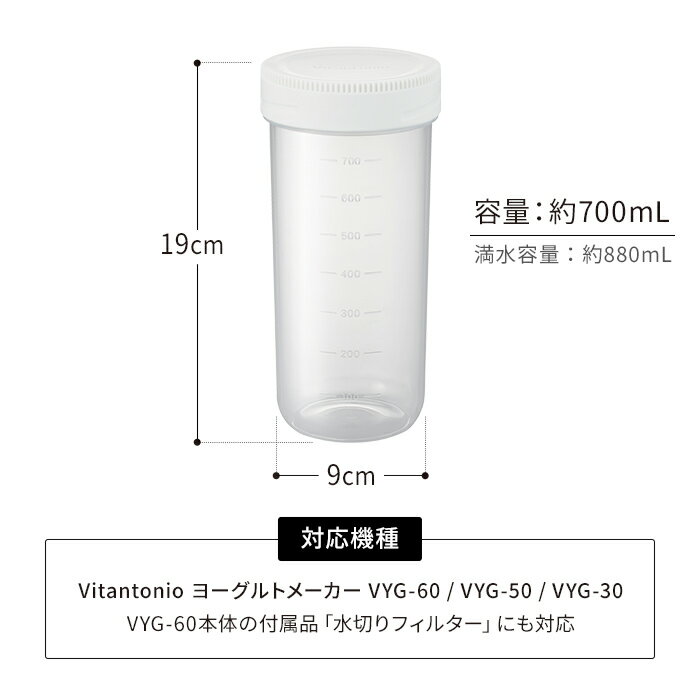 【VYG-60・VYG-50・VYG-30対応】ヨーグルトメーカー ビタントニオ 容器 飲むヨーグルト 予備用 700ml 割れない ヨーグルト 保存容器 目盛り付き 専用容器 甘酒 交換用 トライタン ボトル