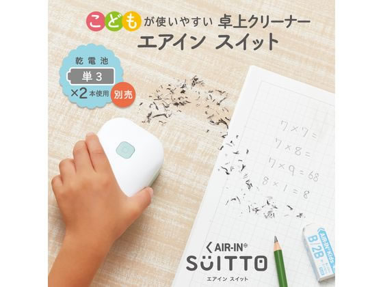 【商品説明】●吸入口へ指が入ることを防ぐ「安全バー」付きで、ケガをしにくい構造●カス掃除時にはケースを開けてもファンが露出せず、ケースを開ける際は自動停止する安全設計●上部のスイッチで簡単ON/OFFでき、低学年のお子様でも簡単にお使いいただけます●ダストケースは丸洗いも可能、清潔にお使いいただけます●小型なのに500円玉も吸い付く吸引力、細かいごみをしっかり吸い取ります【仕様】●外形寸法:W58×D65×H99mm●カラー:ブルー●タイプ:電池式(単3形アルカリ乾電池2本使用(別売))●質量:140g●材質:本体=ABS、PP、steel、PE、EVA●隅々まできれいにできるスクエア形状※電池残量によって、吸引力は変化します【備考】※メーカーの都合により、パッケージ・仕様等は予告なく変更になる場合がございます。【検索用キーワード】PLUS プラス ぷらす 卓上クリーナー エアイン スイット AIR−IN SUITTO たくじょうくりーなー えあいん すいっと ハンディ掃除機 卓上掃除機 そうじ機 卓上 デスク デスクトップ ハンディ クリーナー 電池式掃除機 ミニクリーナー 小型掃除機 小型クリーナー キーボード 卓上そうじ機 卓上クリーナー ハンディークリーナー デスクトップ掃除機 エアダスター ミニ 36325 VC−001AI 36−325 4977564713638 電池式 コードレス リビング学習 子供 子ども 使いやすい 強力 机 そうじ 掃除 勉強机 勉強 学習 ケシゴム 消しゴム RPUP_05 sch_li01 RV2896机やテーブルの上の消しカスや紙クズなどをきれいにお掃除!こどもが使いやすい卓上クリーナー!