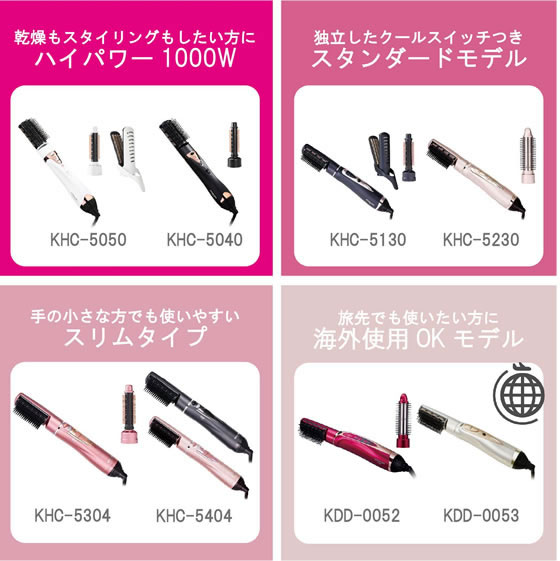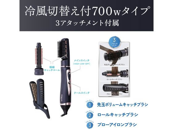 【商品説明】700Wハイパワータイプ。ツインマイナスイオン搭載。3種のブラシで多彩にアレンジ。1、”先玉ボリュームキャッチブラシ” 根本から髪を逃さず「ボリュームアップ」 2、”ロールキャッチブラシ” 毛先をとらえて「しっかりカール」 3、”ブローアイロンブラシ” 挟むだけで片手で「簡単ブロー」。HOT−COOL切換えスイッチ搭載。毛髪巻込み防止機構。【仕様】●電源:AC100V50/60Hz共用●消費電力(約):700W●安全装置:温度ヒューズ152℃●メインスイッチ:HIGH−LOW−OFF●クールスイッチ:HOT−COOL●コードの長さ:約1.7m●サイズ:約234(W)×51(D)×58(H)mm●質量:約310g●付属品:先玉ボリュームキャッチブラシ、ロールキャッチブラシ、ブローアイロンブラシ、取扱説明書(保証書付)【備考】※メーカーの都合により、パッケージ・仕様等は予告なく変更になる場合がございます。【検索用キーワード】小泉成器 KOIZUMI コイズミ こいずみ マイナスイオンカーリングドライヤー まいなすいおんかーりんぐどらいやー マイナスイオンドライヤー カーリングドライヤー KHC5130A ヘアドライ ヘアセット ネイビー NAVY 美容、健康家電 フェイス ヘアケア ボディケア R5594D700Wハイパワータイプ。3種類のブラシで理想の髪へ