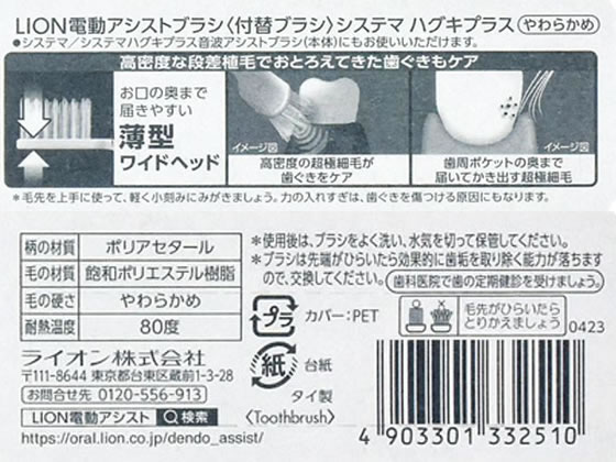 【レビュー投稿で100円OFFクーポン】ライオン 電動アシストブラシ 付替 システマ ハグキプラス やわらか 2本 スペアー替ブラシ オーラルケア 理美容 セルフケア 健康家電