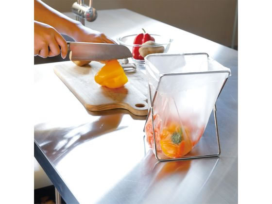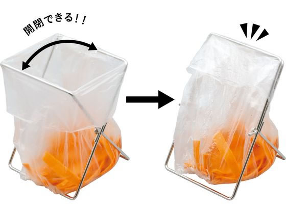 【商品説明】●ポリ袋やビニール袋をセットするだけで、簡易ゴミ箱として使えるポリ袋スタンド●片手で簡単に開閉出来るので、使わないときは口を閉じれば気になる生ごみの臭いもカットします。●畳めばスリムかつ軽量なので、自宅のキッチンだけでなくBBQやキャンプなどに持って行って使うのもおすすめです。【仕様】●使用時サイズ:幅13×奥行14×高17cm●収納時サイズ:幅13×奥行4×高21.5cm●商品重量:140g●主材質:ステンレス●※お手入れは食器用洗剤をつけた柔らかいスポンジなどで洗ってください。たわし・みがき粉・シンナー・ベンジンなどは使用しないでください。●水に強いステンレス素材なので、キッチン台の上だけでなくシンクの中でも気兼ねなく使えます。【備考】※メーカーの都合により、パッケージ・仕様等は予告なく変更になる場合がございます。【検索用キーワード】シービージャパン CBJAPAN しーびーじゃぱん カイヘイデキルポリブクロスタンド ポリブクロスタンド 厨房用品 清掃・衛生・水廻り R326HH開閉できるので臭いを軽減し繰り返し使える