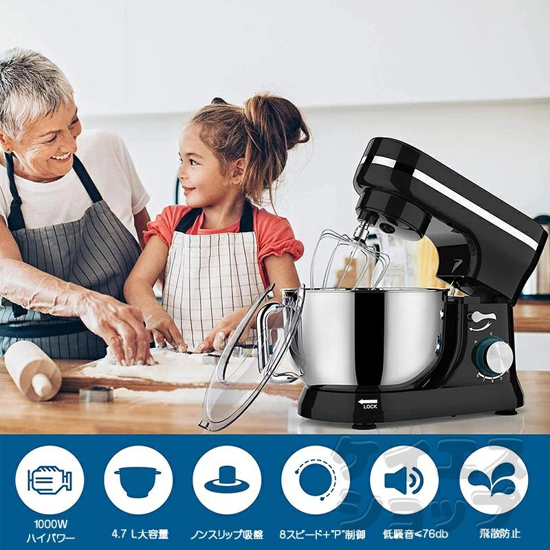 電子版日本語説明書付 テーブルスタンドミキサー 4.7L 業務用 スタンドミキサー 電動ミキサー 8段階スピード調整【スタンドミキサー】【撹拌機】【卓上ミキサー】【業務用ミキサー】【生クリーム】【ミキシング】