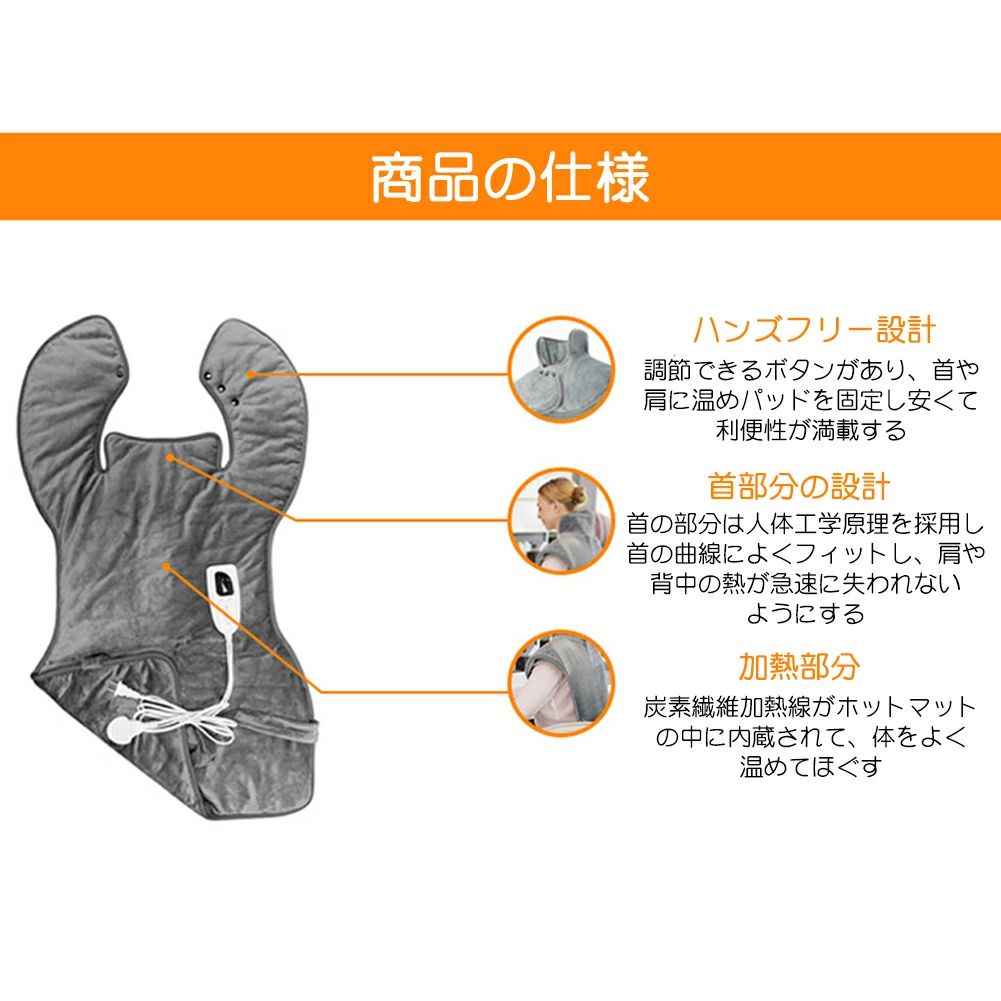 【商品の詳細】 *品名:ホットカーペット *サイズ:94*56cm *素材:フランネル&綿 *温度調節:6段階温度調節(40−60℃) *タイマー設定:4段階タイマー設定(30−120分) *電源コードの長さ:約2.1mの長さ *電圧:100−120V(PSE認証済み) *出力:120W 【製品の紹介】 ★「柔らかくて暖かい電気毛布」寒い日にこの電気毛布を使用する、温かさが身体を包み込みます!肌触りの良いフランネル生地。コントローラーで、40〜60℃の温度調節、30〜120分の時間設定ができます ★「細かい温度調節と時間設定」40〜60℃の温度6段階可調節、対応する温度は40-45-48-52-56-60℃です。30〜120分の時間4段階可設定、対応する時間は30-60-90-120分です。ご自由に調節できます ★「均一全面加熱・全身に適用」加熱は毛布全体を均一に行います。特殊な構造のため、全身に簡単に掛けられる。ひざ、肩、背中、お腹など全部オーケー。首部分に固定ボタンがあり、肩に掛けて活動しても差し支えないので、とても便利です ★「丸洗い可能・お手入れ簡単」コントローラーを取り外して、手洗いや丸洗いできる(洗濯後は完全に乾いてからご使用ください)。洗濯試験にも合格しているので、安心して洗え、いつでも清潔に衛生的にご利用できます ★「安全電圧・冬日実用」安全のため、電気毛布は安全低電圧を採用、温度センサーで一定の温度に上がると自動的に加熱停止システム、安全かつ安心に使用いただけます。自宅のソファーに、部屋のベッドに、オフィスの椅子になど色々な場所に適しています ★【関連キーワード】ホットマット ホットカーペット 電気カーペット 電気マット ミニ 一人用 足元 お腹 首 肩 ひざ 背中 腰 ふわふわ 暖房器具 防寒 あったかグッズ ホットマット一人用 ホットマット椅子 ホットマットミニ ホットマット45cm*45cm ホットカーペットミニ 電気マットミニ 電気マット一人用 電気マットフローリング 肩掛け ひざ掛け 電気マット45 電気あんか 電気毛布 寒さ対策 防寒対策 冷え性対策 冷え性対策グッズ 上品 高品質 男女兼用 グレー グリーン 母の日 プレゼント 母の日ギフト 恋人 友達 父 母 プレゼント ギフト 敬老の日 実用的 父の日 クリスマス 誕生日 還暦祝い お祝い 父の日ギフト 御中元 お中元 送料無料 おすすめ