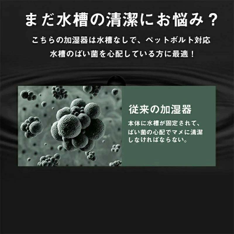 商品情報 商品名 無水槽加湿器 仕様 ■加湿量:27〜100ml/h ■電圧:24V ■消費電力:11W ■サイズ:約140*22mm ■重量:約300g ■USB接続したまま使用 お勧めのポイント ■上部給水:便利な上から給水設計で、動作中でも蓋を取るだけで給水できます。お手入れの際にはタンクに直接手を入れてお掃除できます。時間や手間を省いてらくらくお手入れ。 ■静音設計:ファンの動作音を抑える静音化技術を開発、40dBの作動音を実現しました。静かで穏やかに加湿でき、リビングはもちろん寝室や赤ちゃんのいる部屋にも適しています。 ■アロマオイル使用可能:アロマの香りが心にも潤い。香りが漂うとき、さらにリラックスな空間。