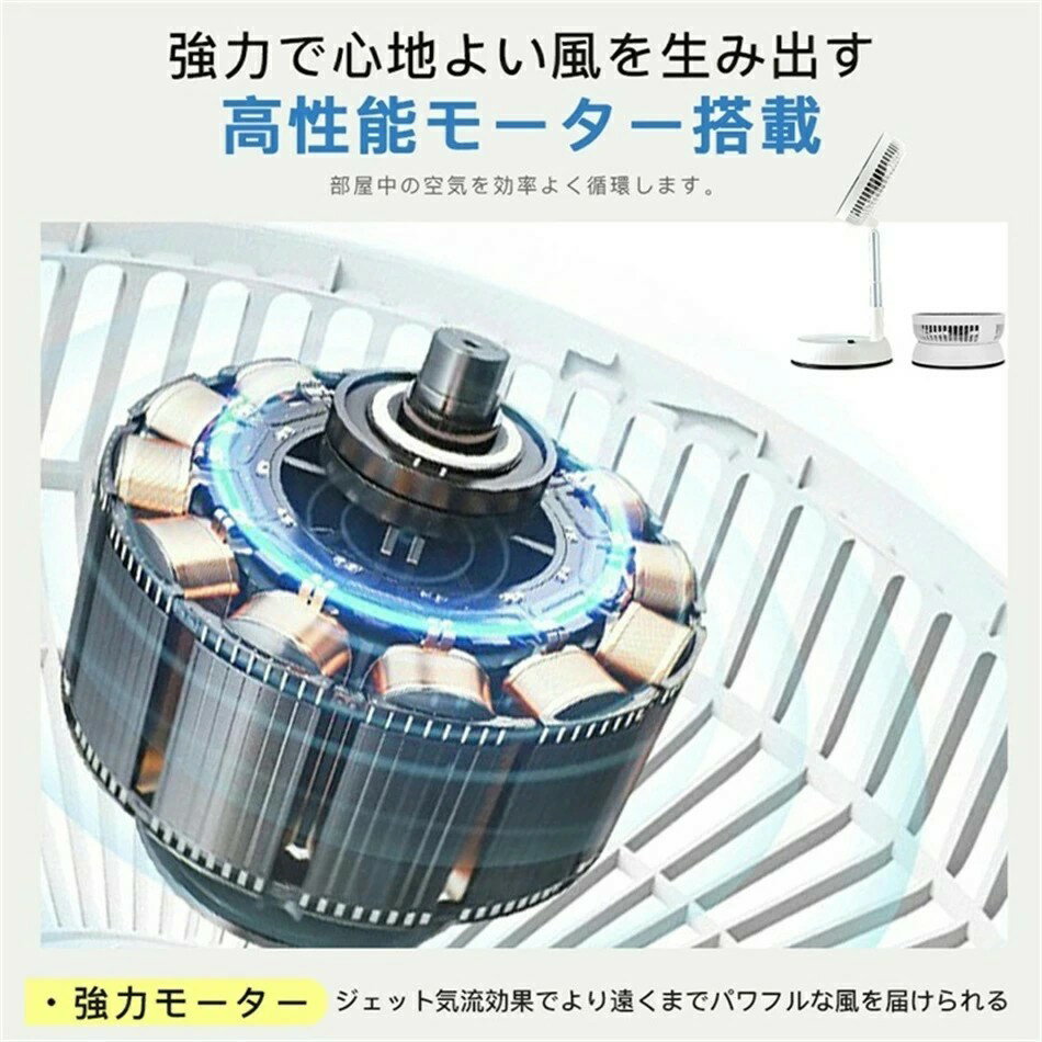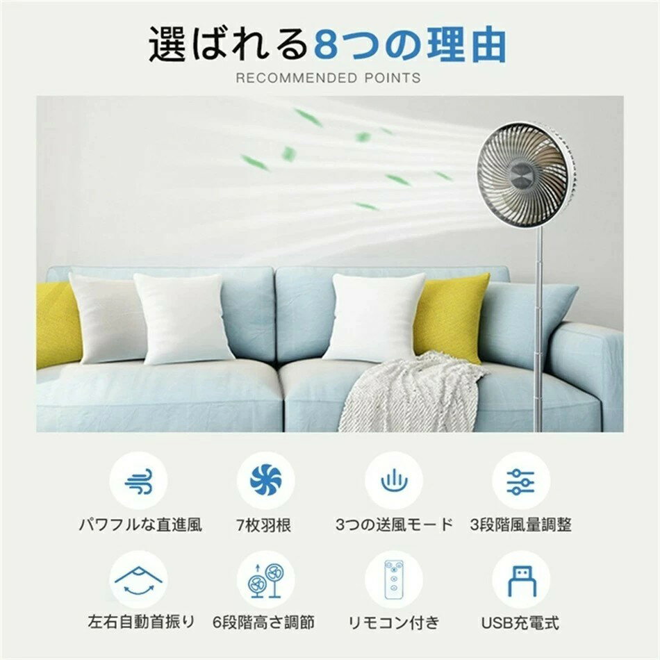 扇風機 USB充電式 7枚羽根 3つの送風モード 6段階高さ調節 折り畳み サーキュレーター 静音 冷風機 90°首振り 省スペース 家庭用 携帯扇風機 熱中症対策