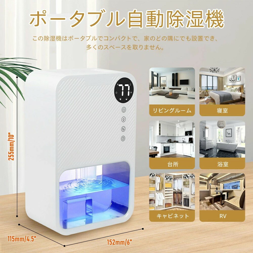 小型除湿機 省エネ 除湿器 静音 大容量1100ML 強力除湿 7色呼吸ライト タイマー付き タッチパネル付き 満水自動OFF スリップモード 除湿器 湿気取り 梅雨対策 カビ防止 クローゼット