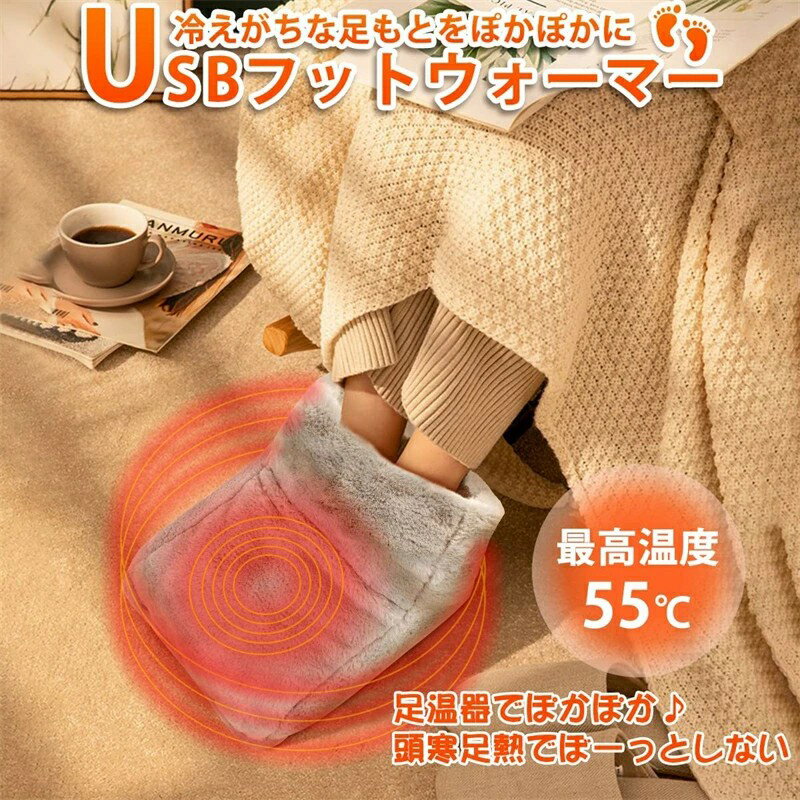 電熱 フットウォーマー 足元ヒーター usb 足温器 電気足温器 温度3段階調整 タイマー機能 洗える テレワーク 在宅勤務 高齢者 プレゼント 足元暖房 寒さ対策 あったかグッズ フリーサイズ 男女兼用 グレー