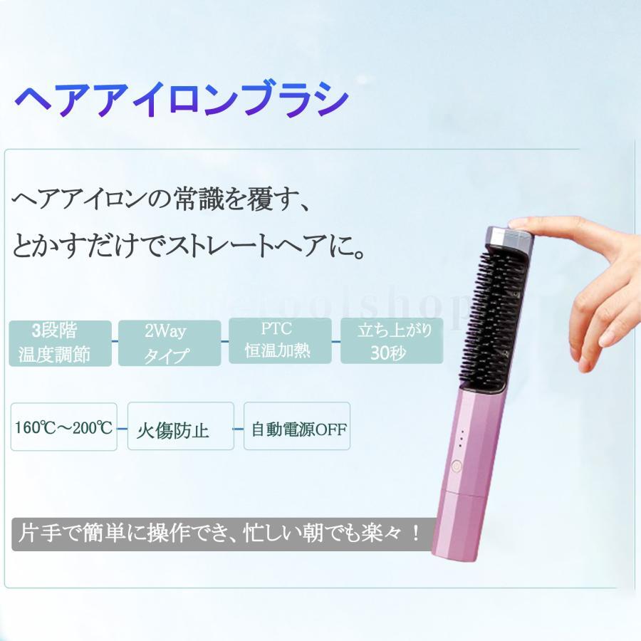 ヘアアイロン コードレス 大容量 4000mAh ヘアアイロンブラシミニ 携帯用 恒温 3段階調温 30分自動停止 内巻き 外巻 直髪 30秒急速加熱 ヒートブラシ 2way 美髪 送料無料