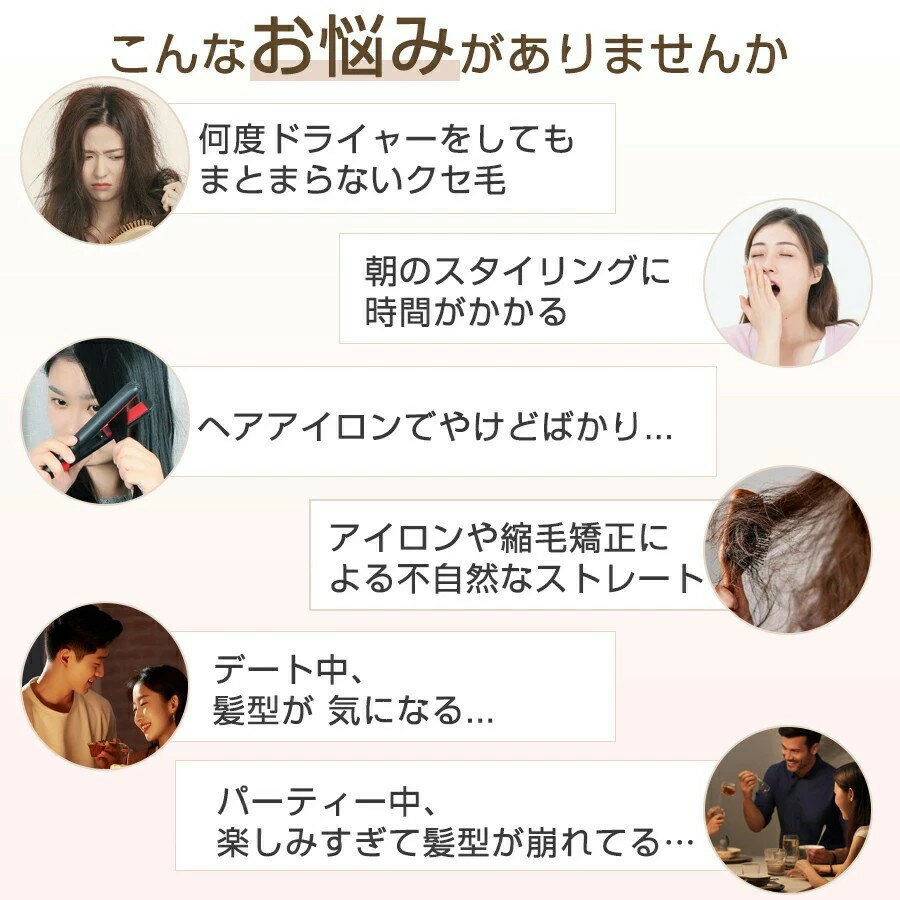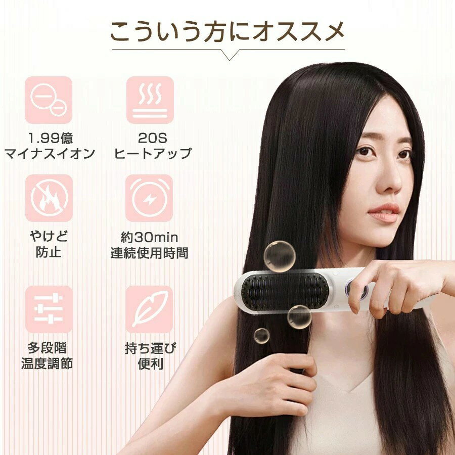 ヒートブラシ ミニ コードレス アイロン ヒートブラシ コードレス コードレスブラシアイロン 前髪 機内持ち込み ストレート カール マイナスイオン USB充電式 Type-C 連続使用 静電気防止 持ち運び 温度記憶 火傷防止 コードレスヘアブラシ ブラシ型ヘアアイロン