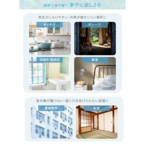 商品説明□設置工事不要!箱から出してすぐにご利用いただけます。 □どこでも移動させて使用できるスポットエアコン。取っ手・キャスター付きで移動もらくらく。 □エアコンを設置できない場所でもご利用いただけます。 □横幅27.5cmとスッキリスリムで場所を取りにくい。 □除湿機能で除湿機としてもご利用いただけます。部屋干しにも活躍。 □送風機能付きで扇風機代わりにもご利用いただけます。 □窓パネル・排気ダクト付属で排熱処理も問題なし。商品詳細□電源 AC100V 50/60Hz □運転方式 冷風/除湿/送風 ※除湿/送風運転時は温度設定はできません。 □能力(50/60Hz) 2.0/2.3kW □消費電力 760/820W □電流 9.3/8.4A □除湿能力 50Hz:21L/日 60Hz:26L/日 □圧縮機 全閉型ロータリー (定格出力0.58kW) □冷媒 R410A □冷媒封入量 295g □騒音値 約54/55dB (50/60Hz) □設定可能温度 16〜32℃ □使用環境温度・湿度 16〜35℃・30〜90% □電源コード長 約2.1m □本体寸法 W275×D330×H680mm □質量 約19.2kg □ドレン処理 ノンドレンタイプ (蒸発皿でドレン水を蒸発させます) ドレン水を連続排水する場合はドレンホースをご利用ください。 □ルーバー 上下左右とも手動 上下調節幅:水平より上向き約45度、下向き約45度 ※左右ルーバーは1本 □付属品 排熱ダクト(約40〜120cm)伸縮式×1 / ダクトエンドA・B×各1 / 窓パネルA・B×各1 / レール用アタッチメント×2 / ネジ×4 / 四角ボルト×1 蝶ナット×1 / ドレンホース×1 / リモコン×1