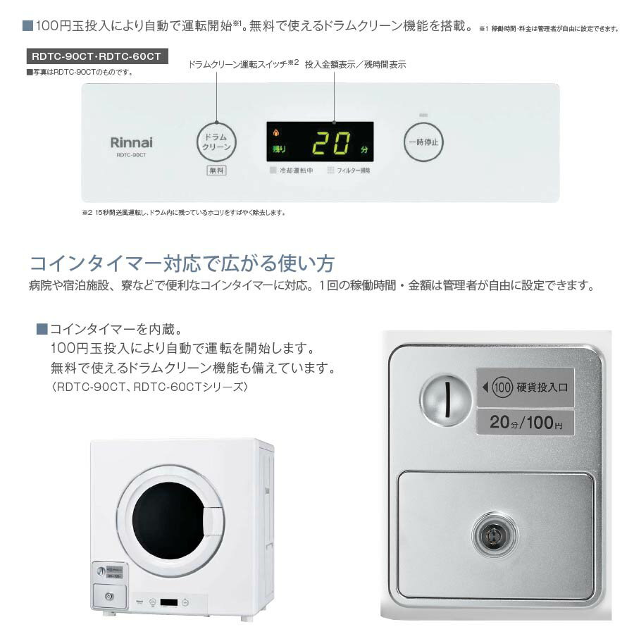 リンナイ 業務用ガス衣類乾燥機 RDTC-90CT はやい乾太くん 9.0Kg ガスコード接続タイプ *受注生産品*[都市ガス][プロパン]《配送タイプA》
