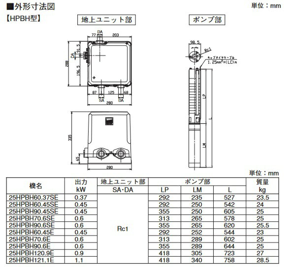 荏原製作所 25HPBH60.45SE HPBHE型(インバータ方式) 深井戸水中ポンプユニット 0.45 kW 単相100V 50/60Hz [♪]
