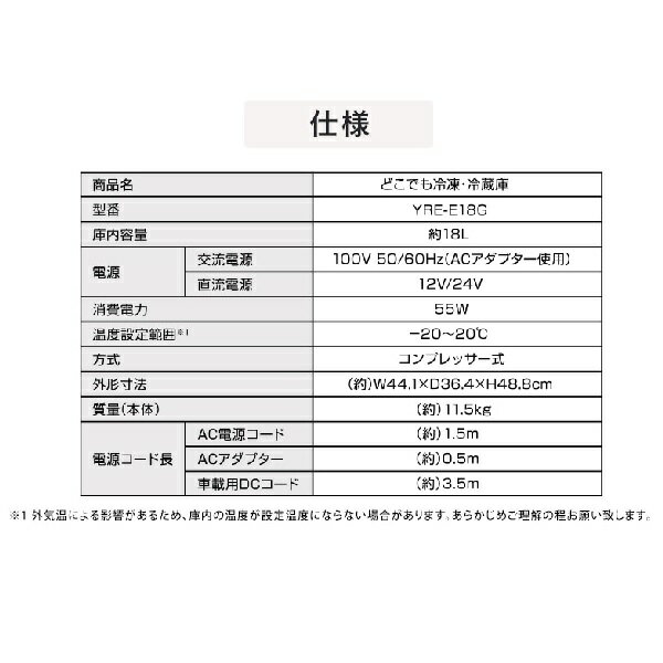 ユアサプライムス YUASA YRE-E18G(H) ポータブル冷蔵庫 冷凍庫 18Lコンプレッサー式 AC電源 DC電源 キャスター キャリーハンドル付き ℃℃