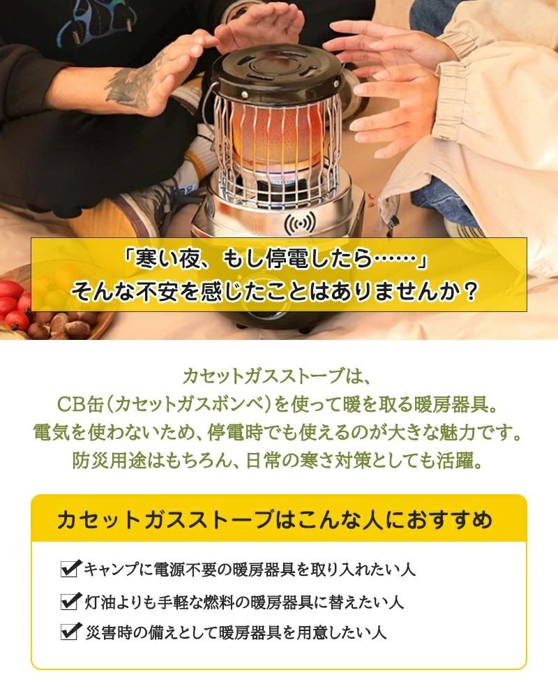【停電時でも使える】カセットガスストーブ 小型 アウトドア 暖房 カセットボンベ ストーブ 防災用品 停電対策 コンパクト コードレス 節電対策 電源不要 キャンプ用 マイ暖ガスファンヒーター 持ち運び簡単 キャンプ 旅行