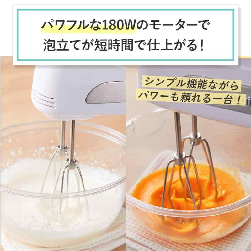 クイジナート スマートパワー 3スピード ハンドミキサー 自立設計 スピード調節 ホワイト HM-030WJサイズ:幅8.5×奥行21×高さ30.5cm本体重量:1kg電源:AC100V 50/60Hz / 消費電力:180Wスピード調節:3段階(低速・中速・高速)定格時間:10分【仕様変更のご案内】 2025年11月メーカー出荷分から「スパチェラ付属なし」に仕様変更させて頂きます。 伴い、新旧在庫が混在する可能性がございますが何卒ご理解賜りますようお願い申し上げます。
