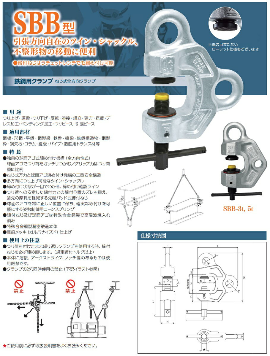 【ポイント10倍】【直送品】 イーグル・クランプ ねじ式全方向クランプ SBB-1 (40〜70) (000000013569) 《鉄鋼用クランプ》