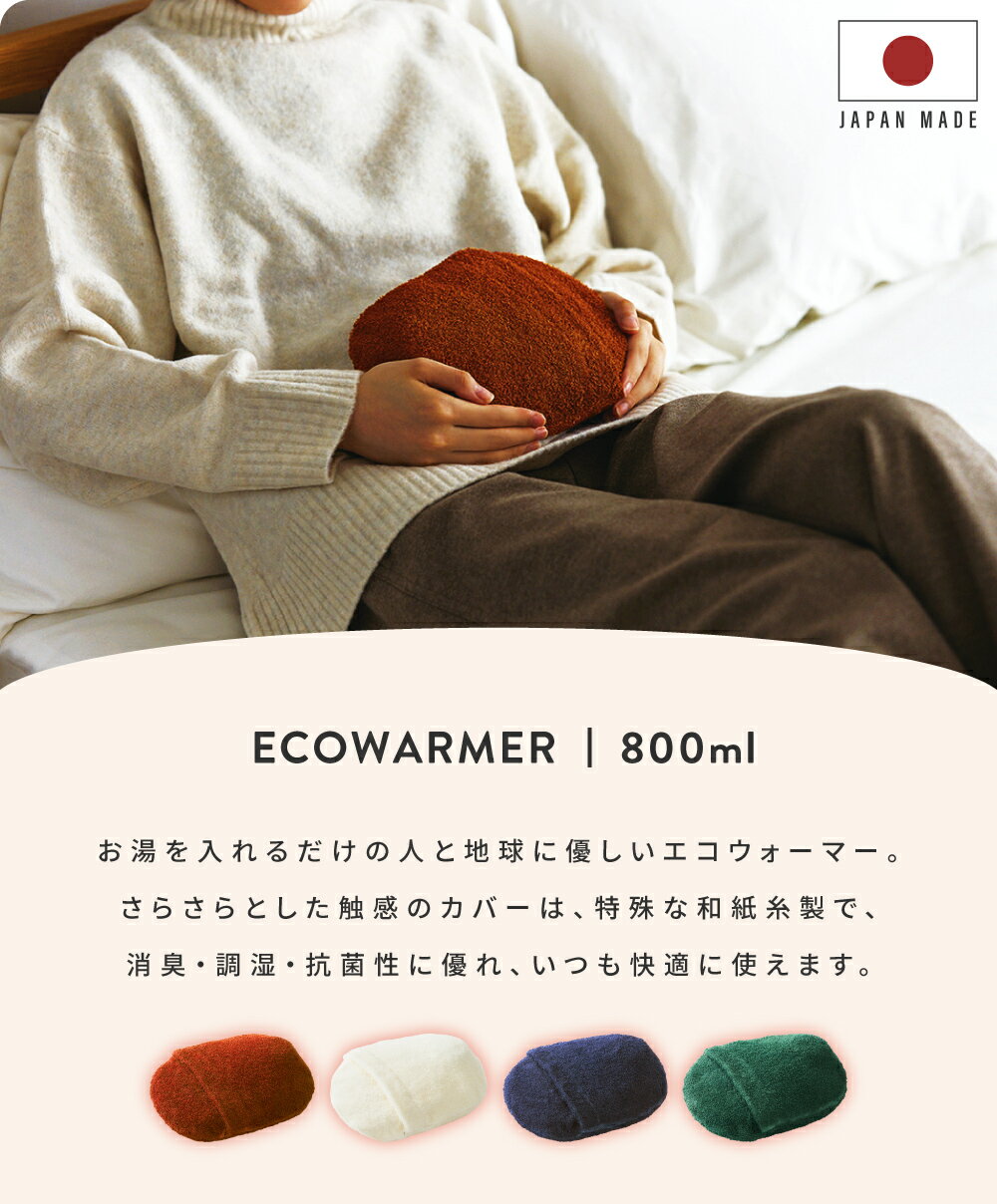 湯たんぽ ゆたんぽ エコウォーマー カイロ 冷え性 寒さ対策 あったか おしゃれ エアコン対策 節電 コンパクト 小さめ 小さい 消臭 抗菌 サステナブル 洗濯 洗濯可 国産 日本産 ホワイト レッド ブルー グリーン 白 新生活 引っ越し