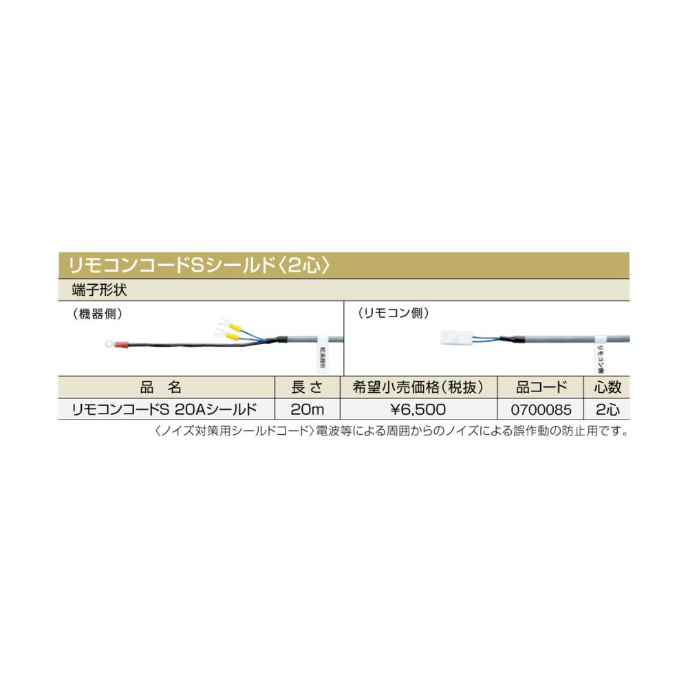 ご購入前に必ずメーカーホームページにて商品の詳細をご確認下さい。また、商品に関して何かご不明な点は下記までお問い合せ下さい。ノーリツ コンタクトセンター0120-911-026(携帯電話からは) 0570-064-910(通話料がかかります)※メーカーのサポート体制は予告無く変更・終了する場合がございます。※当商品は代金引換をご利用頂く事が出来ません。買い物かごのお支払方法にて代金引換をお選び頂かない様お願い申し上げます。 給湯機本体との同時注文。(単品販売不可)■リモコンコードS 20Aシールド ・品コード 0700085