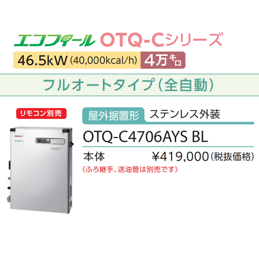 在庫あり即納 ノーリツ エコフィール OTQ-C4706AYS-BL 高効率直圧式石油ふろ給湯機 4万キロ フルオート 屋外据置形 OTQ-C4705AYS-BLの後継 055EC01【時間指定不可】【離島配送不可】
