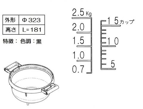 お米を入れるお釜です。◇<サイズ>直径323×高さ181(mm) ◇<内側色>黒 ◇適応機種 RR-150CF、 RR-S15SF、 RR-15SF-1
