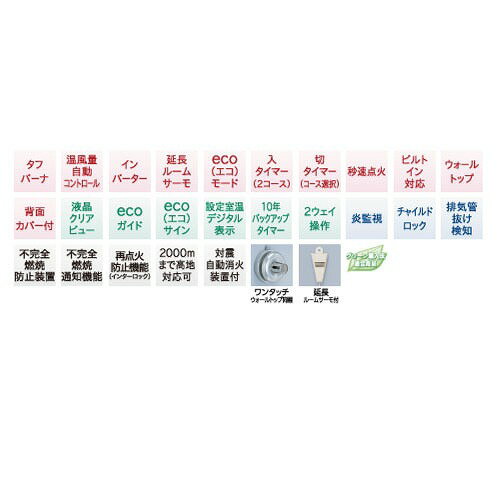 商品説明FF温風タイプ パワフル温風で足もとからポカポカ。 空気を汚さないクリーンで快適な暖房。 ■コンパクト設計 お部屋すっきりコンパクト。 下皿一体構造でお手入れラクラク。 ■高品質タフバーナー 安定した暖房を実現するタフバーナ。 寒い冬でも快適暖房。 ■省エネ 業界No.1の低消費電力。 Eco機能搭載で灯油を節約。 電気代もお得。 ・ワンタッチで省エネができます。 ecoセーブ運転とセーブ消火で体感温度を考えながら灯油を節約します。 ・灯油の節約を表示でサポート。 「今日」「昨日」の灯油使用量や「積算」の灯油使用量を表示します。灯油の使用量を表示することで、使いすぎを抑えた節約暖房をサポートします。 ・低消費電力設計。 DCモーターを採用し、運転中の消費電力を従来機種より約10〜50%低減。 ■誰にでも使いやすい 快適性がアップする使いやすい機能と設計 ・2コースの入タイマーが選べます 「平日と休日」や「朝と夕方」などお好みに合わせたタイマー設定の使い分けがカンタンに行えます。 ・秒速点火で速暖 あらかじめ秒速点火キーを押しておくとスイッチONから約15秒で点火します。帰宅時の冷えきった身体もすぐに温まるうれしい機能です。 ※秒速点火ONの状態ではヒーターに通電していますので平均約100Wの電力を消費します。また18時間以内に点火操作をしないと秒速点火は自動的に取り消されます。 ・めんどうな時計合わせが不要! リチウム電池内蔵 10年バックアップタイマー搭載! リチウム電池内蔵なので、シーズンオフ時などに電源プラグを抜いても、10年間※時計機能が持続します。 ※1年の85%の期間、電源プラグを抜いているとして算出。 ・業界トップクラスの低騒音設計。 高効率モーターとディンプルプレート熱交換器のタフバーナ、風切り音を抑えたワイドスロープグリルにより最小火力時20dBの運転音を実現しました。(最大火力運転時36dB) ※2025年6月現在。FF式温風タイプにおいて、FF-WG40・WG52タイプ最小火力時の値。最小火力で運転した場合、設定温度までお部屋が暖まらなかったり、時間がかかったりします。商品詳細外形寸法 高さ475×幅709×奥行318mm 質量 19.4kg 待機時消費電力 0.5W 壁貫通穴径 φ65〜φ75(給排気筒径φ50) 延長排気管径 φ40
