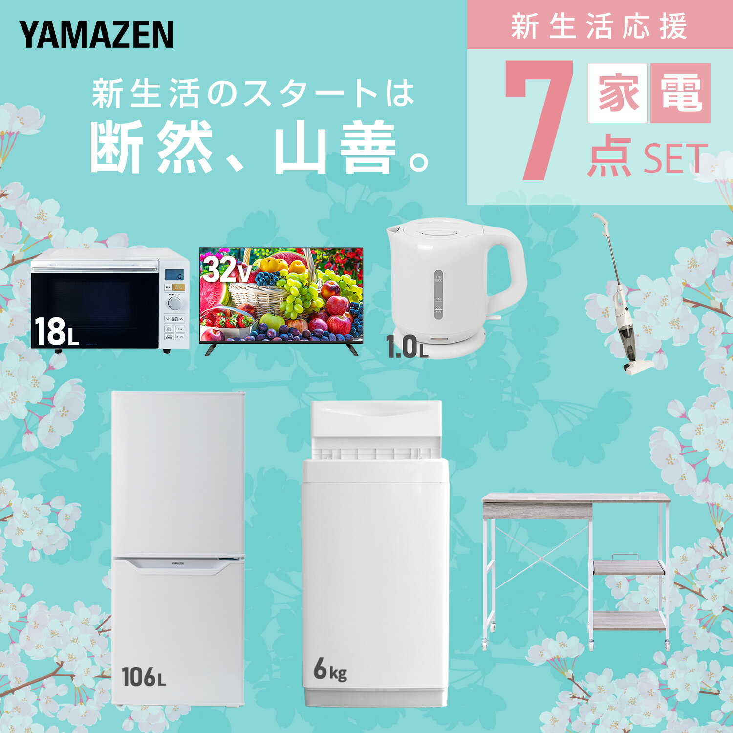 【設置サービス対応】 家電セット 一人暮らし 7点セット冷蔵庫 106L 洗濯機6kg オーブンレンジ 32型液晶テレビ 電気ケトル 掃除機 レンジ台新生活家電セット 一人暮らし 二人暮らし おすすめ おしゃれ 冷蔵庫 洗濯機 山善 YAMAZEN 【送料無料】