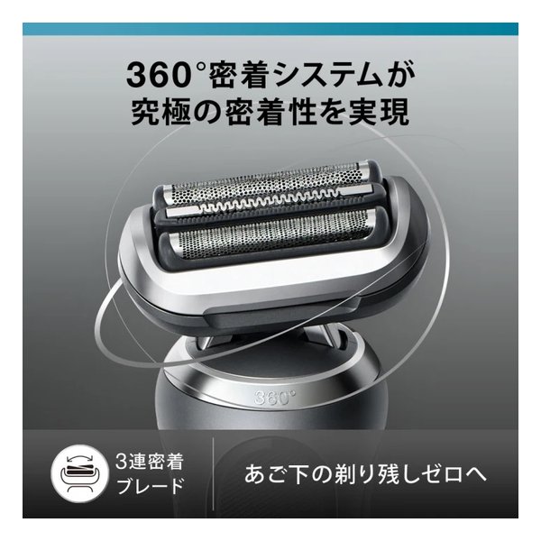 ●究極の密着性 究極の密着性で、あご下でさえ、剃り残しゼロへ。 毎日のシェービングの中でも、最も剃りずらい部分であり、日中にジョリっとして剃り残しが気になるあご下。 ブラウンの密着シリーズなら難しいあご下でさえ密着し、剃り残しゼロへ。●360°密着システム搭載 シリーズ7は360°密着システムを搭載。 “3つの刃の浮き沈み”、“前後の首振り”に横の動きも加わった究極の密着性を実現。 全方位への動きが可能となり、密着が難しく、剃り残しが気になるあご下や鼻下でも密着します。 あご下の剃り残しゼロへ●安心安全の耐久設計 ドイツで設計されたブラウンのシェーバーは安心安全の耐久設計。 様々な厳しい条件下での使用試験、耐久試験を突破したシェーバーは、長くお使いいただけるすぐれた耐久性を持っています。 ドイツのクラフトマンシップを体現したブラウンのシェーバーをできるだけ長くお楽しみください。●アルコール洗浄システム ブラウンだけのアルコール洗浄で皮脂汚れもしっかり落とし、毎日新品同様の剃り味をキープ。●1度の充電で最大50分の連続稼働 高機能リチウムイオン電池を搭載し1度の充電で最大50分の連続稼働を可能に。 また、5分の充電で1回のシェービング分を急速充電。 忙しい朝に充電がされていなかったというケースにも対応いただけます。 ※お使いのシェービングモードや使用環境、使用回数などによって異なる場合があります。■同梱物:シェーバー本体、ブラシ、アルコール洗浄システム洗浄液 1個、電源コード、ヒゲトリマー(キワゾリも可)、網刃保護キャップ